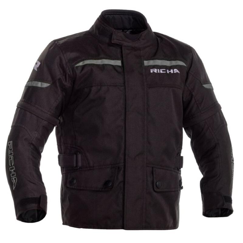 Richa Tipo Junior dječja touring moto jakna izrađena je od izdržljivog 600D Cordura tekstila te opremljena AquaShell LTZ vodonepropusnom membranom za pouzdanu zaštitu od vremenskih uvjeta. Model omogućuje produživanje rukava putem patentnog zatvarača na rukavima, što omogućuje jednostavno prilagođavanje duljine. Jakna uključuje CE zaštite na ramenima i laktovima, a predviđen je prostor za ugradnju dodatne CE zaštite za leđa. Certificirana je prema standardu A, čime zadovoljava osnovne sigurnosne zahtjeve za touring vožnju. Može se upariti s dječjim moto hlačama Richa Tipo Junior za kompletiran set. Materijal Vanjski materijal: 100% poliester Podstava: 100% poliester