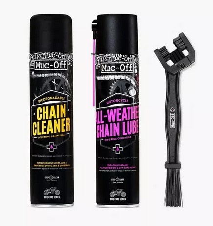 Muc-Off Motorcycle Chain Care Kit je komplet s kojim ćete jednostavno i učinkovito održavati lanac motocikla. Sadrži biorazgradivo sredstvo za čišćenje lanca, mazivo za sve vremenske uvjete i četku za lanac – sve što vam treba za čišćenje, podmazivanje i produljenje vijeka trajanja lanca. Sadržaj seta Biodegradable Motorcycle Chain Cleaner (400 ml) – uklanja ulje, mast i prljavštinu; sigurno za O-, X- i Z-ring lance All-Weather Chain Lube (400 ml) – sintetičko mazivo s keramičkim aditivima i UV bojom Motorcycle Chain Brush – trostrana četka za čišćenje svih strana lanca Tehničke karakteristike Prikladno za: Standardne, O-, X- i Z-ring lance Površine: Guma, metal, plastika, karbon Značajke: Sve u jednom: čišćenje + podmazivanje + alat UV boja za vizualnu kontrolu nanosa Ne ostavlja tragove nakon čišćenja Četka učinkovito uklanja nečistoću iz svih kutova Brzo i jednostavno korištenje UPOZORENJA: Sprejevi su ekstremno zapaljivi Boca pod tlakom – može eksplodirati ako se zagrije Nadražuje oči i kožu Štetno za vodeni okoliš Čuvati izvan dohvata djece UPUTE ZA UPOTREBU: Očistite lanac četkom i sprejem za čišćenje. Isperite i osušite lanac. Nanesite mazivo s unutarnje strane lanca. Provjerite pokrivenost pomoću UV svjetiljke. Obrišite višak maziva.